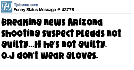 X says Breaking news Arizona shooting suspect pleads not guilty...If he's not guilty, O.J don't wear gloves.