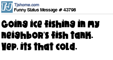X is going ice fishing in my neighbor's fish tank. Yep, its that cold.