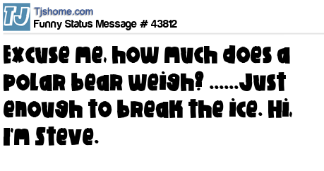 X Excuse me, how much does a polar bear weigh? ......Just enough to break the ice. Hi, I'm Steve.
