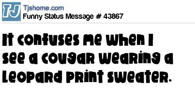 X It confuses me when I see a cougar wearing a leopard print sweater.