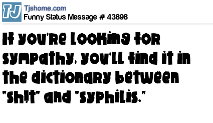 - # 38578 you want sympathy? look it up in the dictionary, its right between sh*t and syphilis.