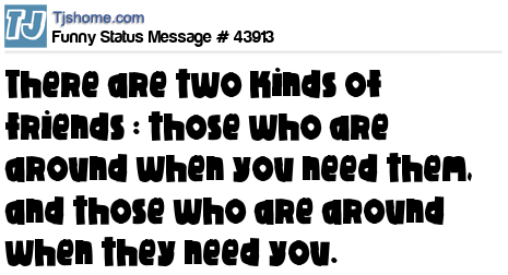 X There are two kinds of friends : those who are around when you need them, and those who are around when they need you.