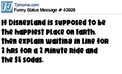 X If Disneyland is supposed to be the happiest place on Earth, then explain waiting in line for 2 hrs for a 2 minute ride and the $5 sodas.