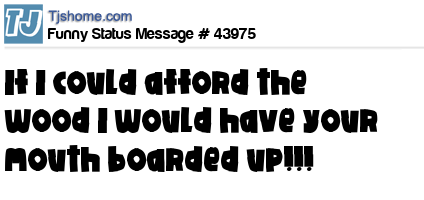 X is if I could afford the wood I would have your mouth boarded up!!!