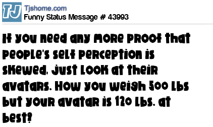 X says if you need any more proof that people's self perception is skewed, just look at their avatars. How you weigh 500 lbs but your avatar is 120 lbs. at best?