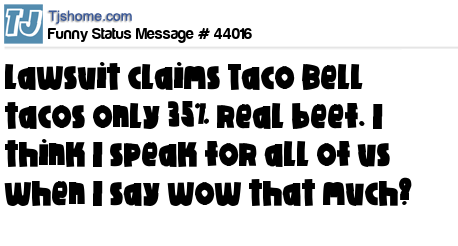 - # 16735 Thinks it would be completly acceptable to eat Taco Bell tacos today for lent because they don't contain REAL meat
