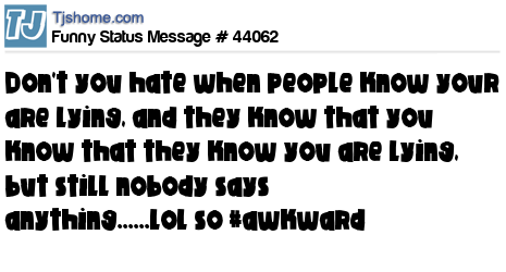 X Don't you hate when people know your are lying, and they know that you know that they know you are lying, but still nobody says anything......lol so #awkward