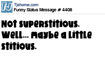 - # 85673 I'm not superstitious. Stitious, yes, but not in a heightened sense. I am, however, super lazy sometimes.