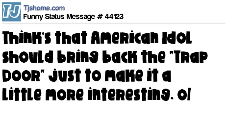 X Think's that American Idol should bring back the "Trap Door" just to make it a little more interesting. \o/