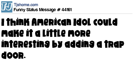 - # 47454 American Idol would be more exciting if there was a trap door contestants fell through immediately upon hearing the news of being sent home