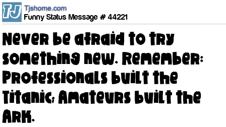 - # 45671 Never be afraid to try something new. Remember, amateurs built the Ark. Professionals built the Titanic