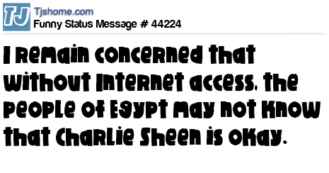 X says I remain concerned that without Internet access, the people of Egypt may not know that Charlie Sheen is okay.