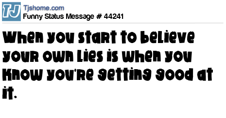 X  When you start to believe your own lies is when you know you're getting good at it.