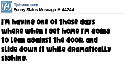 X I'm having one of those days where when I get home I'm going to lean against the door, and slide down it while dramatically sighing.