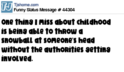 X One thing I miss about childhood is being able to throw a snowball at someone's head without the authorities getting involved.
