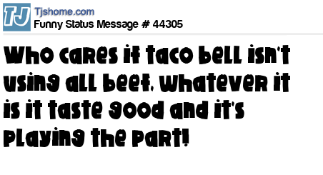 X says Who cares if taco bell isn't using all beef, whatever it is it taste good and it's playing the part!