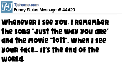 X  Whenever I see you, I remember the song "Just the way you are" and the movie "2012". When I see your face… it's the end of the world.