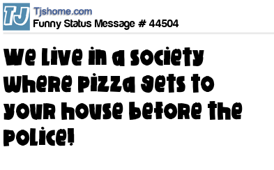 - # 5715 surprised how we live in a society where pizza gets to your house faster than the police...