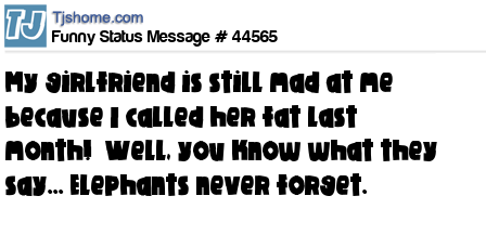 X  My girlfriend is still mad at me because I called her fat last month!  Well, you know what they say... Elephants never forget.