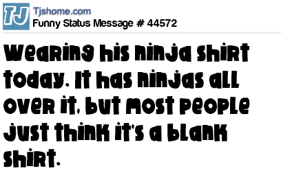 X is wearing his ninja shirt today. It has ninjas all over it, but most people just think it's a blank shirt.