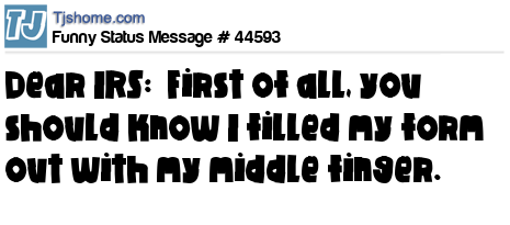 X is Dear IRS: First of all, you should know I filled my form out with my middle finger.