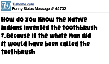 - # 39069 How do you know the Native Indians invented the toothbrush ?..Because if the white man did it would have been called the teethbrush..