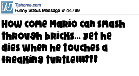 X  How come Mario can smash through bricks... yet he dies when he touches a freaking turtle!!!???
