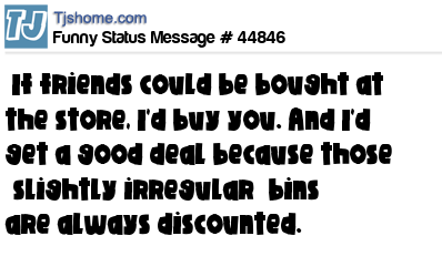 X   If friends could be bought at the store, I'd buy you. And I'd get a good deal because those “slightly irregular” bins are always discounted.