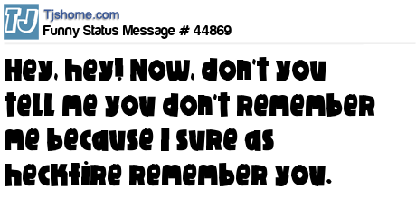 X Hey, hey! Now, don't you tell me you don't remember me because I sure as heckfire remember you.