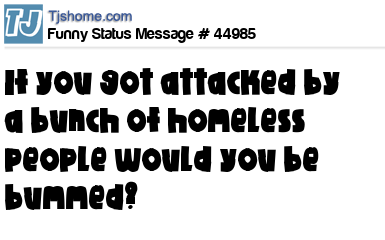 - # 193194 If I got attacked by a bunch of homeless people I think I would really be bummed.