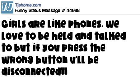 - # 15364 Girls are like phones. We love to be held, talked too but if you press the wrong button you'll be disconnected!