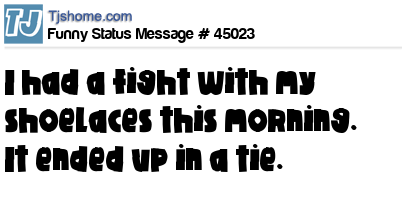 X I had a fight with my shoelaces this morning. It ended up in a tie.