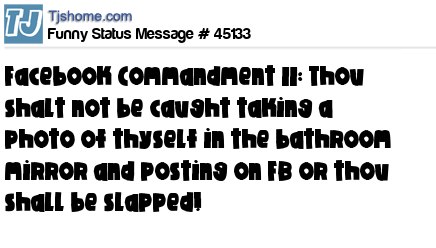 X says Facebook Commandment II: Thou shalt not be caught taking a photo of thyself in the bathroom mirror and posting on FB or thou shall be slapped!
