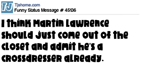 X is I think Martin Lawrence should just come out of the closet and admit he's a crossdresser already.