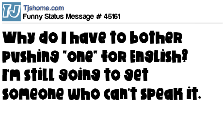 - # 194558 Why do you ask me to press 1 for english when you know damn well you're going to transfer me to someone who doesn't speak english?