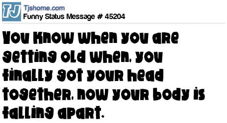 X is You know when you are getting old when, you finally got your head together, now your body is falling apart.