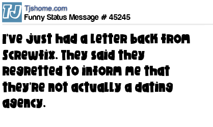 X I've just had a letter back from Screwfix. They said they regretted to inform me that they're not actually a dating agency.
