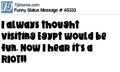 X is I always thought visiting Egypt would be fun. Now I hear it's a RIOT!!