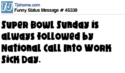 X  Super Bowl Sunday is always followed by National Call Into Work Sick Day.