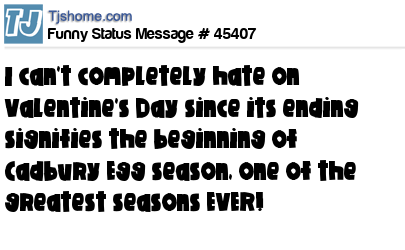 X says I can't completely hate on Valentine's Day since its ending signifies the beginning of Cadbury Egg season, one of the greatest seasons EVER!