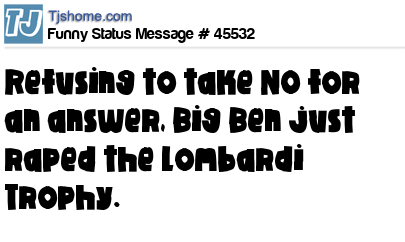 X refusing to take NO for an answer, Big Ben just raped the Lombardi Trophy.