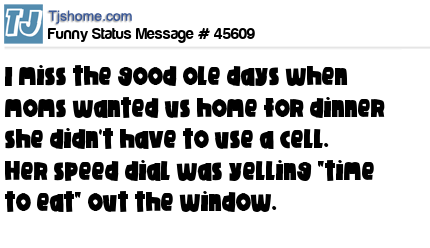X I miss the good ole days when moms wanted us home for dinner she didn't have to use a cell. Her speed dial was yelling "time to eat" out the window.