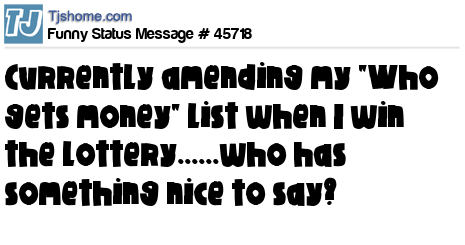 X is currently amending my "Who gets money" list when I win the lottery......who has something nice to say?