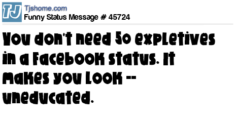 X You don't need 50 expletives in a Facebook status. It makes you look -- uneducated.