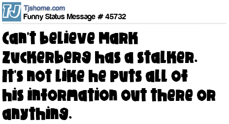 X can't believe Mark Zuckerberg has a stalker. It's not like he puts all of his information out there or anything.