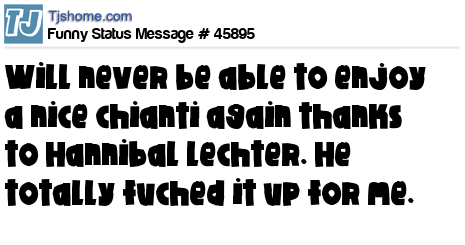 X will never be able to enjoy a nice chianti again thanks to Hannibal Lechter. He totally fuched it up for me.