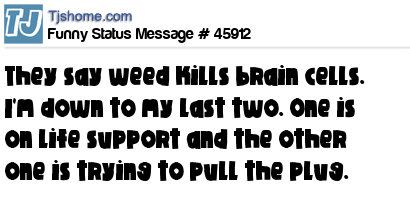 X is They say weed kills brain cells. I'm down to my last two. One is on life support and the other one is trying to pull the plug.