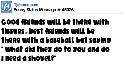 X is Good friends will be there with tissues...Best friends will be there with a baseball bat saying " what did they do to you and do I need a shovel?''