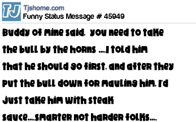 X Buddy of mine said, “you need to take the bull by the horns”….I told him that he should go first, and after they put the bull down for mauling him, I'd just take him with steak sauce….smarter not harder folks….