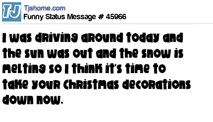 X is I was driving around today and the sun was out and the snow is melting so I think it's time to take your Christmas decorations down now.
